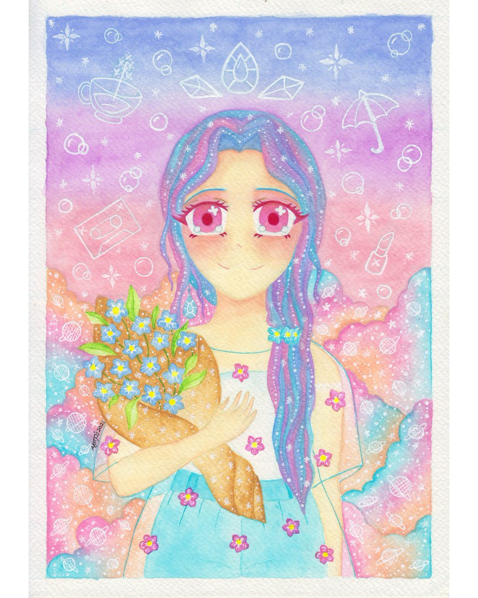 Anna☔🌼💙 . #rie500_dtiys #dtiys #watercolor #ArtOfIndonesia #Artidn #ArtistOnTwitter #zonakaryaid #イラスト . Original Anna Art by @riesabil 🌼