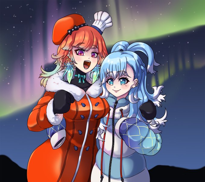 I drew Takanashi Kiara and Kobo Kanaeru standing front of the Aurora. :) #artofashes #AeruSeni