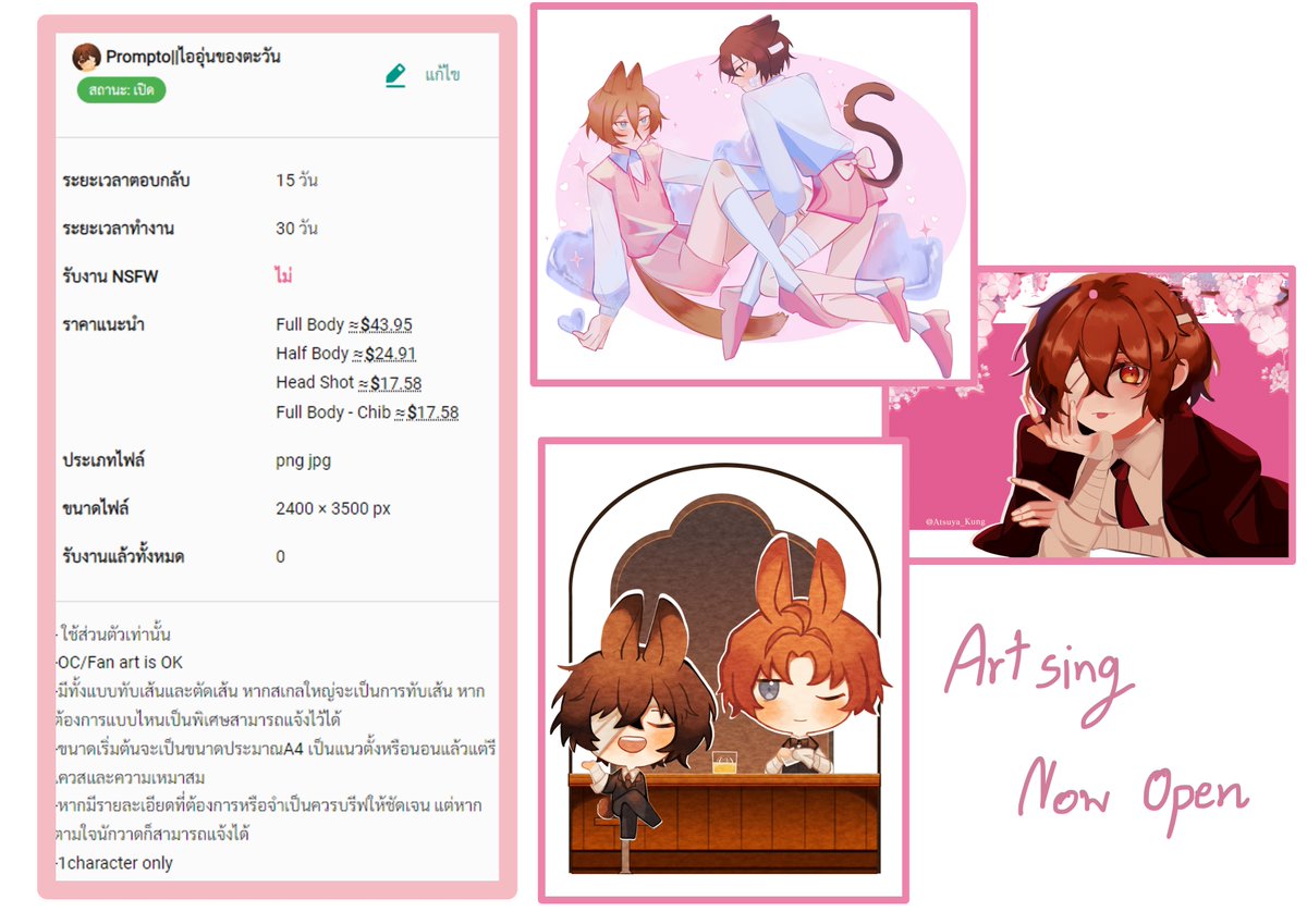 ทดลองระแบบArtsign สองงานแรกค่ะ ตอนนี้ปิดอยู่ ในอนาคตถ้ามีเปิด จะแจ้งในทวิตเตอร์อีกครั้งค่ะ #artsign #commission