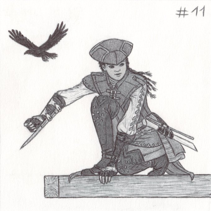 #Inktober2022, Day 11: #Eagle. You can’t escape Aveline and her Eagle Vision. #inktober #AssassinsCreed #AssassinsCreedLiberation #AvelineDeGrandpré #AvelineDeGrandpre #Ubisoft #art #fanart #traditionalart