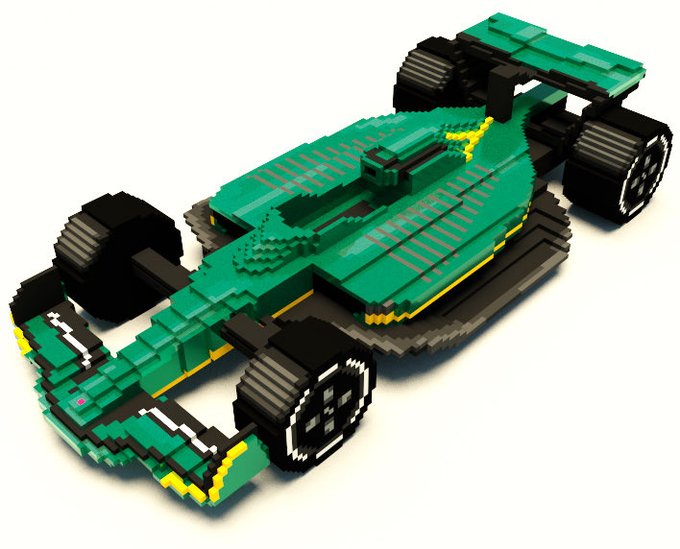 とあるお方のリクエストでボクセルモデリングの練習。写真見て目見当で組みました。なんだかんだで3時間くらいかかっちゃった。まだまだ仕事が遅いです😅 #voxelart #voxel #magicavoxel #F1 #AstonMartin