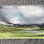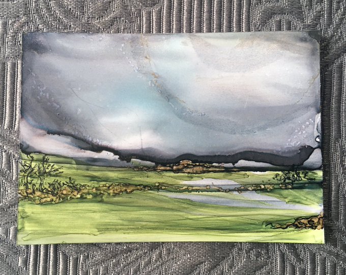 Fast scho meditativ, diese Kleinstformatmalerei 😉 #workinprogress #landscapepainting #alcoholinks Und ja, das wird eine #atctausch Karte