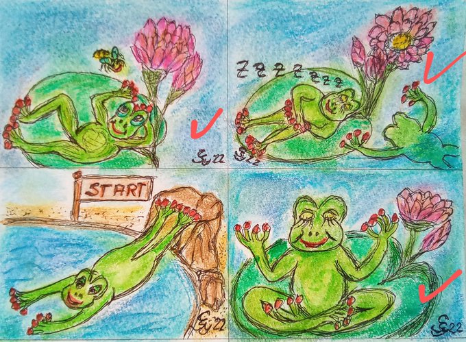 Moin Ihr Lieben 🖌️🌈❣️ #kleineKunstklasse #atcTausch @kunsttausch @kunstklasse #aquarell #frogs #happyfrogs #artistontwittter #ArtistsOnTwitter Happy frogs! Diese Fröschlein sind glücklich mit dem, was sie tun! Drei sind schon weggehuepft, wer möchte den letzten? !B