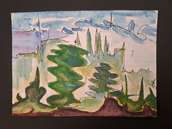 Karten für den #atcTausch #atc Mehr wurden es heute nicht🙂 #kleineKunstklasse #linietrifftfarbe #watercolor #abstractart Land kalt/warm