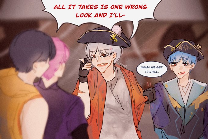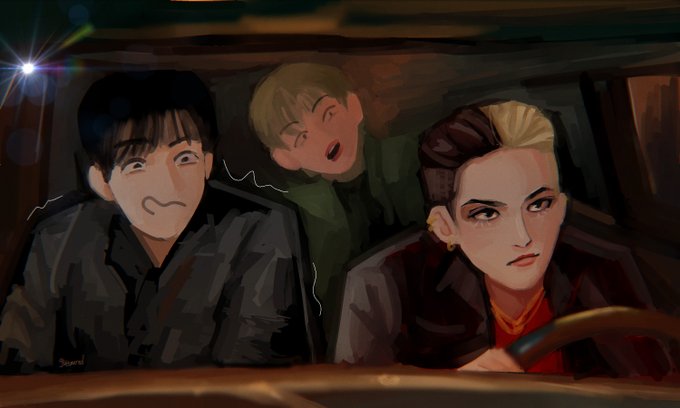 I couldn't seem like I could draw a scene beautifully so I offer chaos lol #AteezXDisney_Collab thinking about them as the trio from Cruella (2021) #HONGJOONG #YUNHO #MINGI #ATEEZfanart
