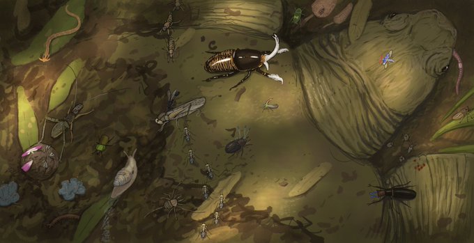 Results from the next #AtlantisBestiary3 stream! The world of the leaf litter is balanced on the back of a digging turtle and we started doing work on the open Woodland. It doesn't look like much yet but there is a lot of plants that went into this!