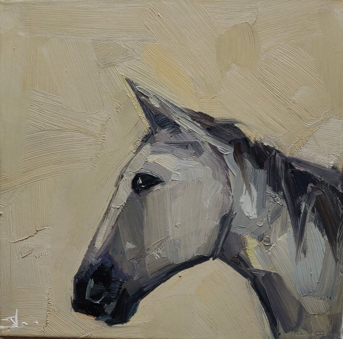 White Horse 12 X 12 Inches Oil on Stretched Canvas Available #oilpainting #Artcoholic #ArtistOnTwitter #impressionism #artwork #homedecoration #ebayfinds #auction #MondayMotivation #painting #artforsale #horse