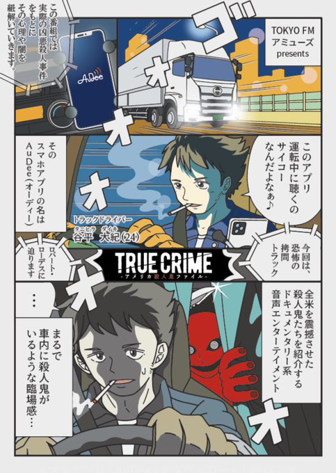 東京FM アミューズ presents 『トゥルークライム アメリカ殺人鬼ファイル』 シーズン3 audee.jp/program/show/1… 無料音声コンテンツ #AuDee をダウンロードして迫力の臨場感をお楽しみくださいませ☆ #PR イラスト漫画を描きました。 twitter.com/truecrimejp/st…