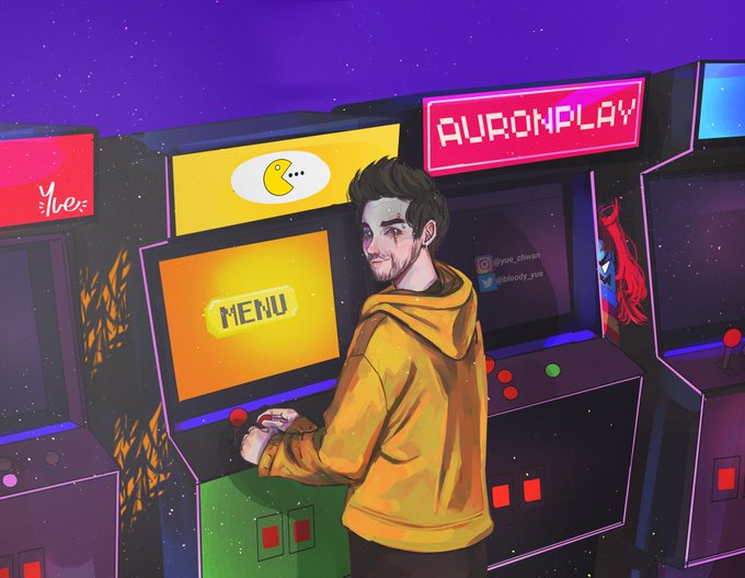 Auron dijo que quería comprar una recreativa y yo quería dibujarlo ahí con el vicio ajsgahg🥸🤝 Espero que les guste ugu #auronfanart • @auronplay <3