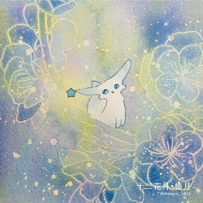 <槲季生.十二花月-梅月> #AuroraFairy #fairy #illustration #槲季生 #小狐狸 #水彩 #十二花月 #梅月 #十二月 #梅花 pixiv.net/artworks/94514…