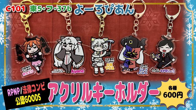 【C101グッズ】RPNP&法律コンビ アクリルキーホルダー #C101 #アクリルキーホルダー #グッズ #茜ちえり #ながのりょう #Ayane #白亜マウル #じゃこにゃー #学術系VTuber #VTuber pixiv.net/artworks/10395…