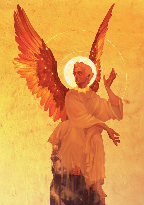 you know how some things are too beautiful to be painted just once? yeah this is one of them 😭 #GoodOmensFanArt #GoodOmens2Spoilers #Aziraphale #michaelsheen