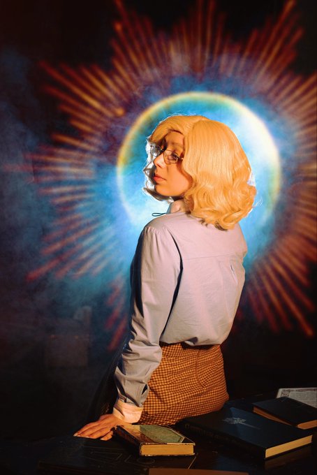 Retro-fashioned fem!Aziraphale by me (GreenT) Photo by Ananastua @neilhimself #goodomens #aziraphale #goodomenscosplay #goodomensaziraphale #cosplay #aziraphalecosplay