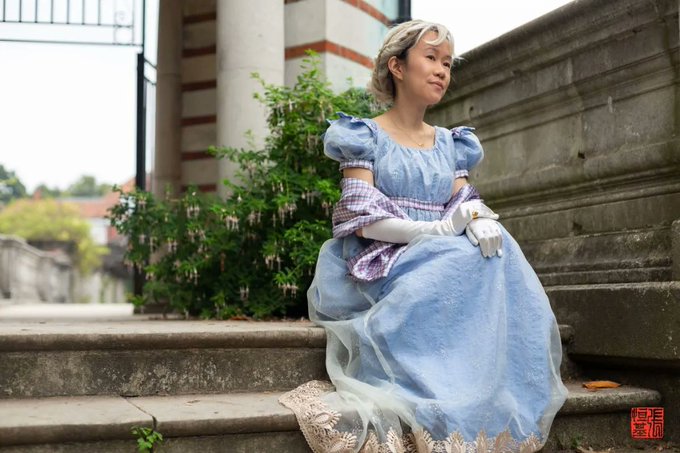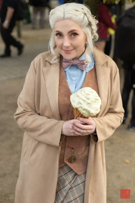 Elizabethan Aziraphale / Good Omens Cosplay by @TricksyC Photos by @FoodAndCosplay Taken at @MCMComicCon London 21 #aziraphale #femaziraphale #goodomensprime #goodomenscosplay #aziraphalecosplay @neilhimself