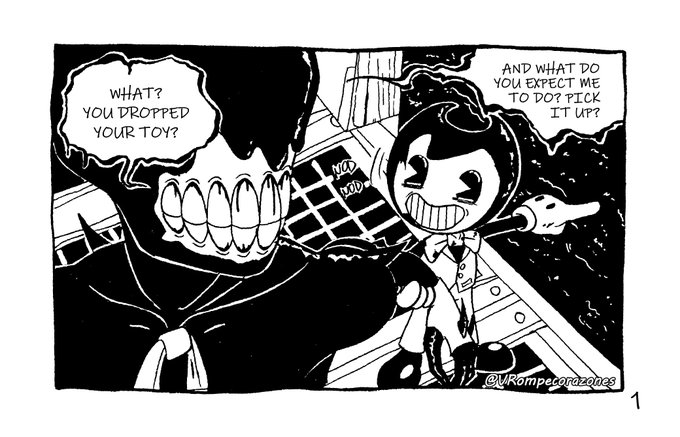 BATDR: Lost toy part 1/3 Backgrounds are so much easier when I simply copy them. After getting used to my chibi-cartoon style, this is a bit difficult, but I like the result. #BENDY #Bendy_and_the_Dark_Revival #inkdemon #batdrfanart #comic