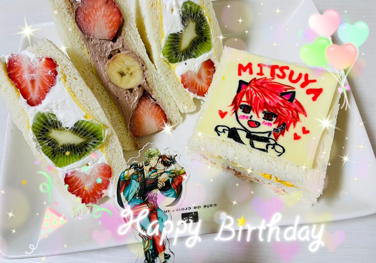 ❤️☀️❤️☀️❤️☀️❤️☀️❤️☀️❤️☀️ 3/30 光也 Happy Birthday🎉 ☀️❤️☀️❤️☀️❤️☀️❤️☀️❤️☀️❤️ 頼れる最年長✨光也さんの誕生日だ〜🎊🥳🎂 緩光とモブ光イメージでフルーツサンドにしました🥝🍓🍌😂 可愛いみつニャンも😽❤️ #BBiコレ #BBi誕 #緩光 #BBiコレファンアート #光也爆誕祭2022