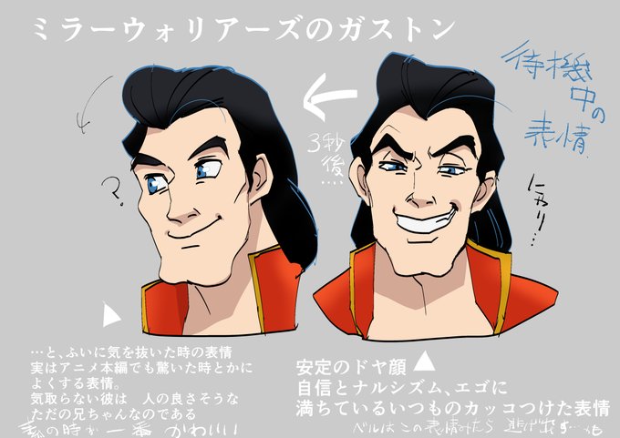 ミラーウォリアーズのガストン(個人的)考察落書き 待機画面のバグを直して貰えたので、拝み放題である。 気取った表情の後の、気の緩んだ顔が滅茶苦茶いい ガストンのガストンらしくない表情が一番好きなのだ (世の中は矛盾に満ちている) #DisneyMirrorverse #BeautyAndTheBeast #美女と野獣