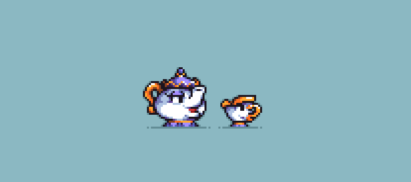 A quick Mrs. Potts and Chip for @Pixel_Dailies #kettle #pixel_dailies #BeautyAndTheBeast #pixelart #ドット絵 #aseprite