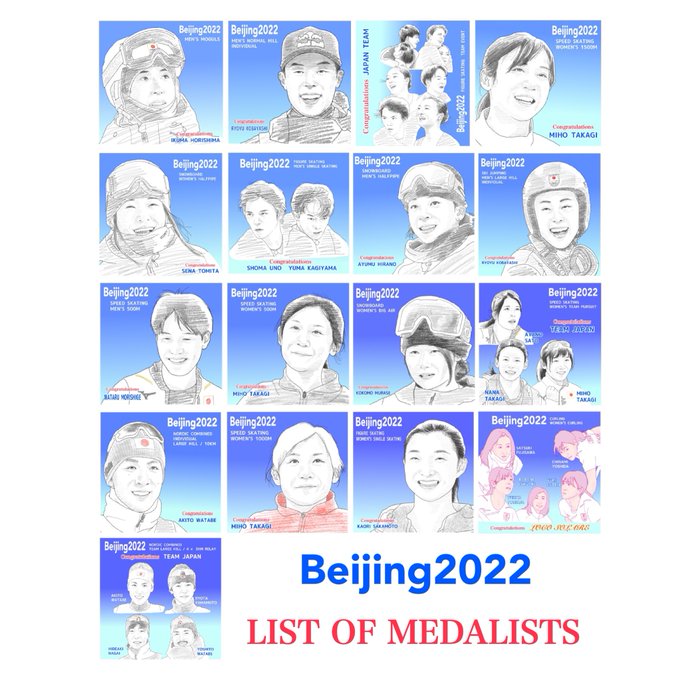 メダルを獲得した選手も、惜しくも逃した選手もお疲れ様でした🙇♂️ そして感動をありがとうございました😊 東京五輪の時は途中で挫折したメダリストのイラストも、今回は何とか描ききったのでまとめてみました😃 #北京2022オリンピック #Beijing2022 #メダリスト #落書き #イラスト