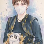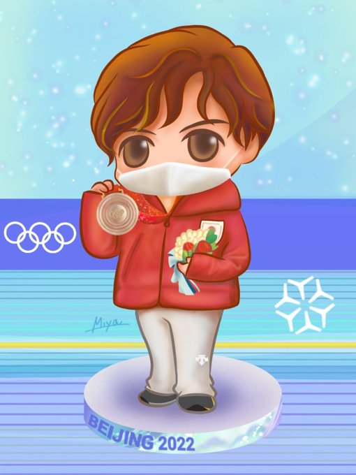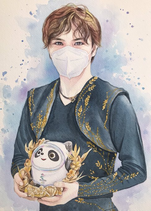 #Beijing2022 も残りあと2日! のんびり描いてたら今頃完成🙈 タイミングおかしくてスミマセン💦 しょまドゥンドゥン🐼💕 #宇野昌磨 #ShomaUno #BingDwenDwen #水彩 📷 共同通信 / 宮野翔平さん