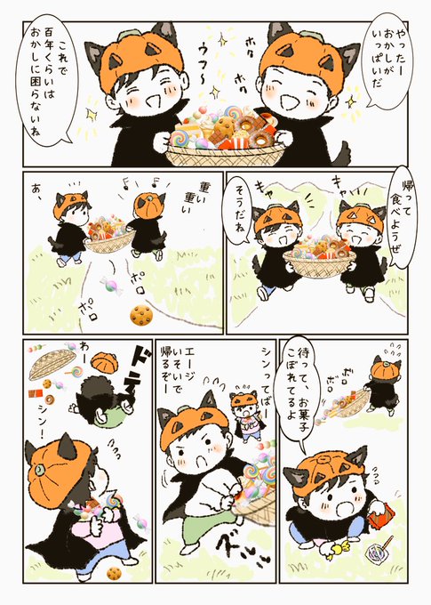【BANANA FISH】🍌🐟 ハロウィンロール焼けたよっ👻🎃 ボーンズ達と騒いで... できあがってる酔っ払い魔法使い英二🥴笑 と..... 困り顔のアッシュ!❤️😁 #BFハロウィン2021 #BANANAFISH #ロールケーキ