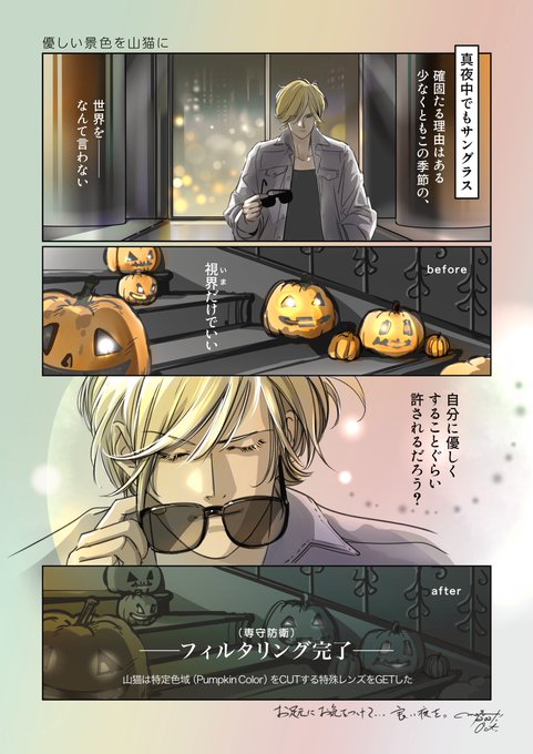 【Cosplay】 BANANA FISH/12話 「ーーよそう。 この話をすると またケンカになる。 今夜ばかりは ギャングもカタギも 休業さ」 「ああ」 ・ ・ ・ 嵐の前の静けさみたいな この語らいのシーン、 大好きです #BFハロウィン2021 Ash:るい Eiji:エイトさん 素敵なえーじに感謝