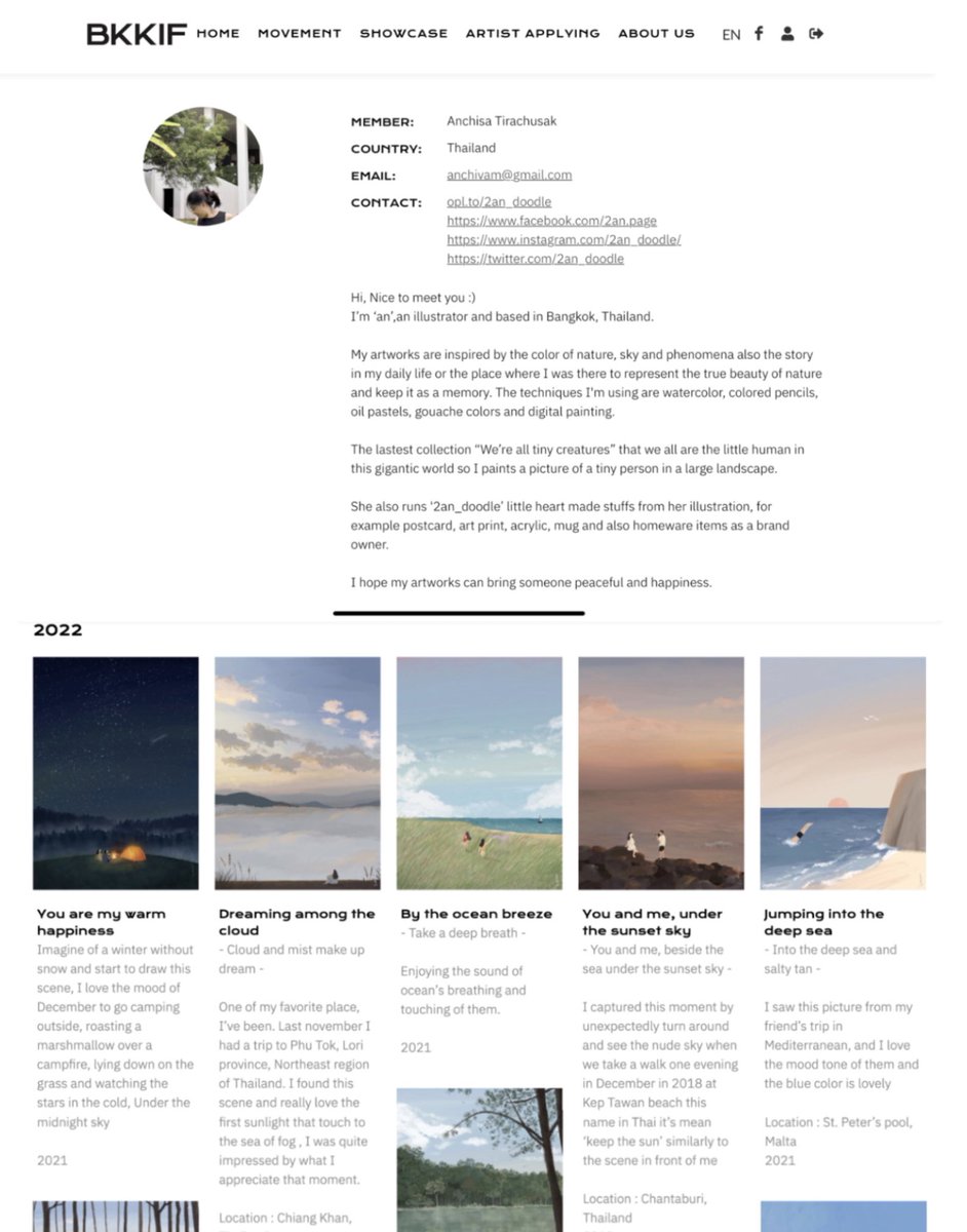 อ๋อย ในฐานะนักวาดนูกูตัวเล็กๆที่ได้มีโอกาสจัดแสดงครั้งแรก รู้สึกเปิดโลกกับ #BKKIF2022 มากฮะ ได้เจอคนที่หยุดยืนฟังอย่างตั้งใจ ชื่นชมงานอย่างจริงจังและสนุกไปกับงาน สานฝันมากๆฮะ 😭💖 สำหรับวันนี้ขอบคุณทุกคนที่ได้เจอกันนะฮะ มีความหมายมากจริงๆ มีงานอีก 3 วัน มารู้จักกันนะฮะ 🍞🍑🌻