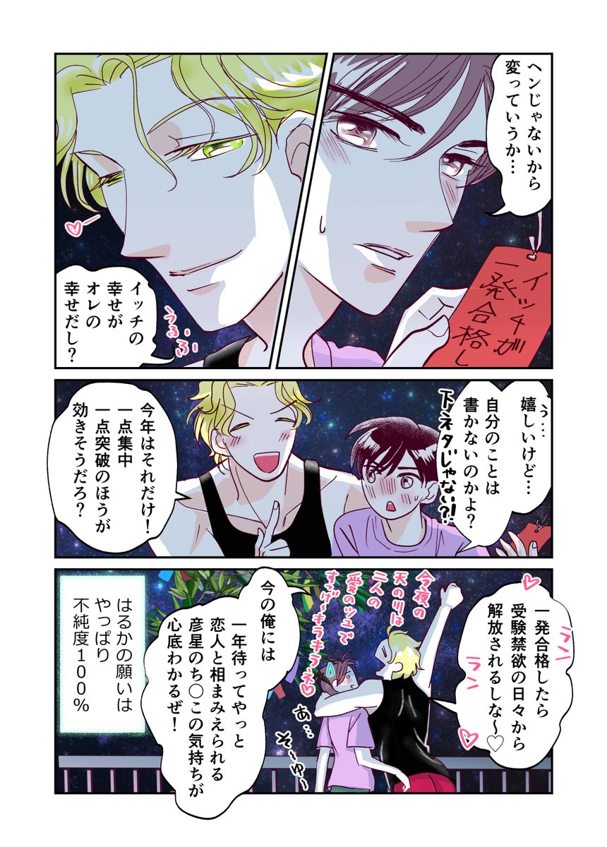 おはようございます。 七夕🎋わんず、完成したのでみていただけたら嬉しいです🙇♀️ だいぶ遅刻💦 みんなみんな幸せに✨ 悠里さんの素敵企画のタグも使わせていただきました。 ありがとうございます♡ #漫画が読めるハッシュタグ #創作BL #七夕 #わんず #BL・七夕なので自キャラで甘いワンシーン