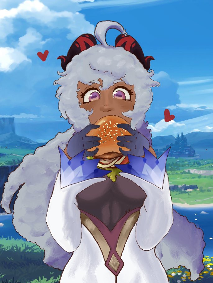 Been gone for a while (* V° *)... but i drew ganyu eating a burger (o'v'o) #ganyu #ganyugenshinimpact #genshinimpactfanart #art #fanart #digitalart #genshinimpact #genshinimpactfanart #ganyufanart #blackartist #blackart