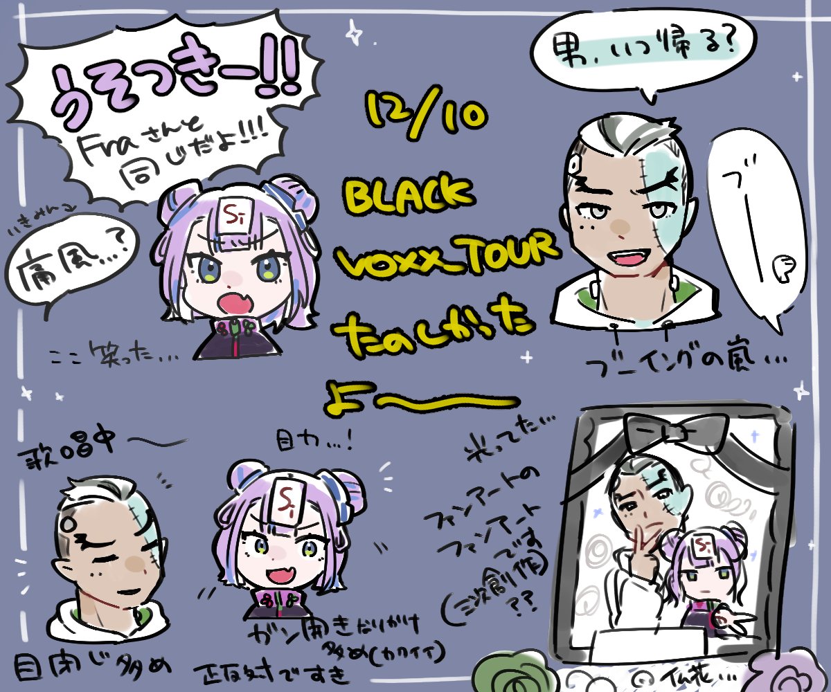 今更ですが、#BLACKVOXX_TOUR 完走おめでとうございます 初のVイベ、ほぼほぼ初と言ってもいい程久しぶりのクラブ。 自分に新しい事を沢山くれるぶぎぼ。大好きだぞ ! #ぶぎぼのえ #アナログ絵