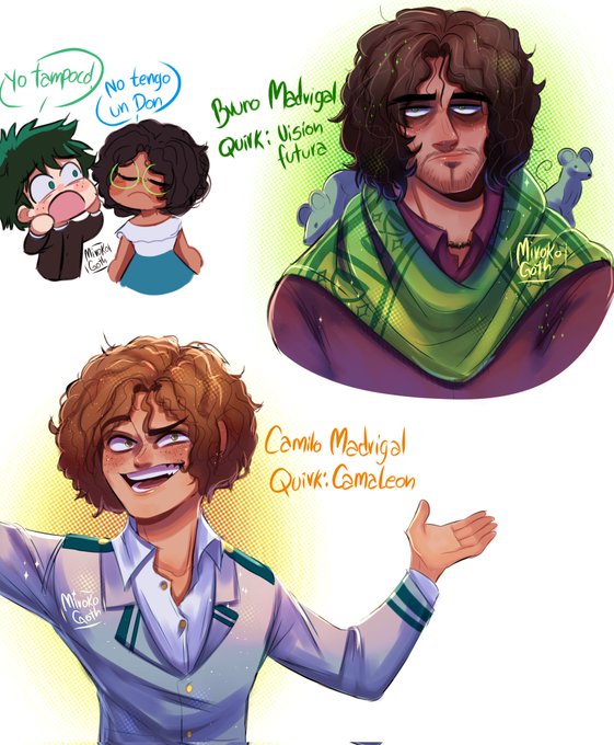Boku no Encanto Bruno sería como profesor o el rarito misterioso que siempre se la pasa merodeando por ahí Camilo seria el payaso de la clase y lo castigan a diario por usar su Don con los profesores Y Deku x Mirabel canon✨ #Encanto #brunomadrigal #camilomadrigal #BNH #Myart