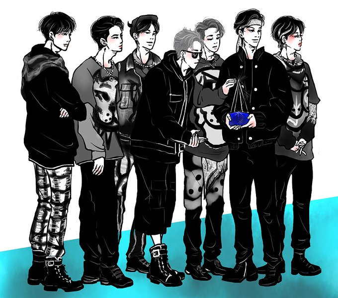 Airport Sonyeondan are here! 🔥🔥🔥 I'm so happy my boys get to travel and will see Armys live 😭💕💕💕 I'm skipping sleep for this, but had to celebrate (that, and I loved the outfits 🤭) I also realise I forgot Tae's buttons... @BTS_twt #btsfanart #btsartmy #PTD_ON_STAGE_LA