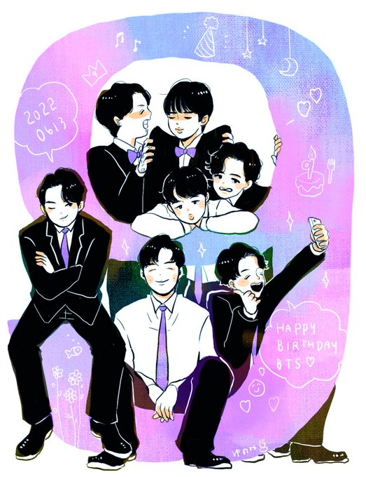 過去絵で申し訳ないですが、お祝いしたいので滑り込みでおめでとうございます💃🏼🕺💃🏼🕺 少年団の皆様、これからもどうぞ宜しくお願いします😘💓✨✨ #BTS9thAnniversary #BTSFESTA2022 #btsfanart