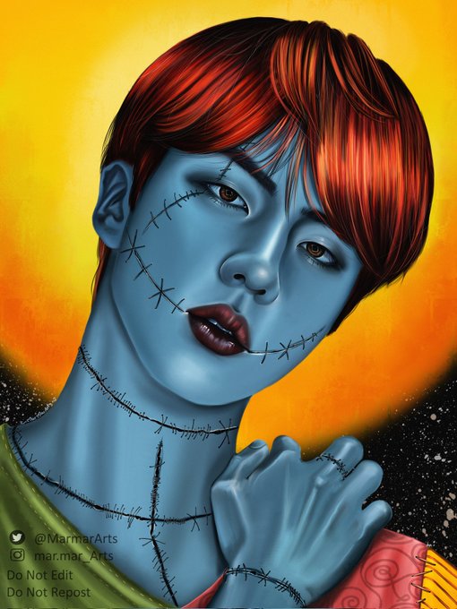 Seokjin as Sally, The nightmare before Christmas 🎃👻 for my #btsxtimburton collab . #BTSHALLOWEEN #seokjinhalloween #btsfanart #bts