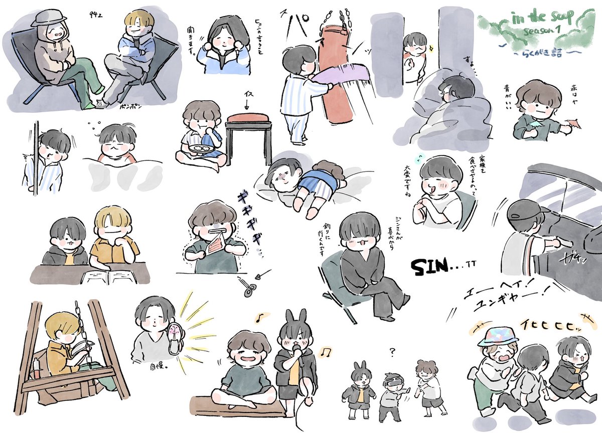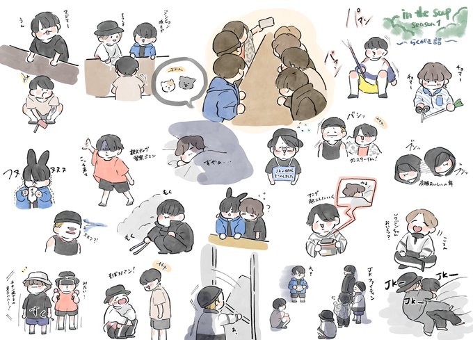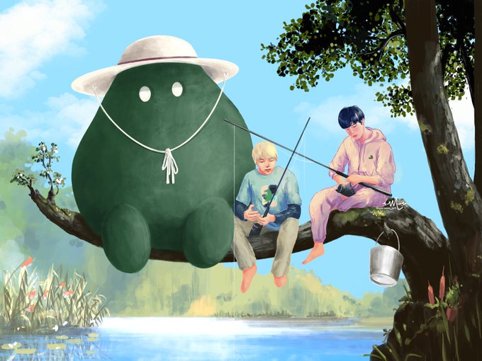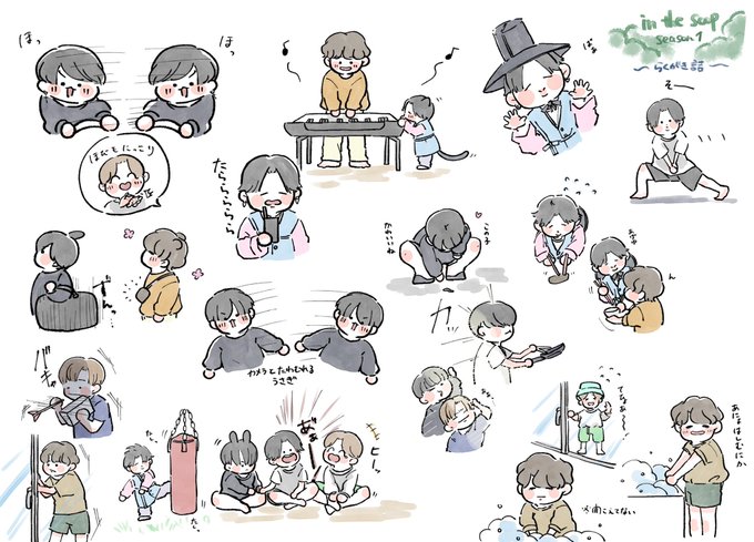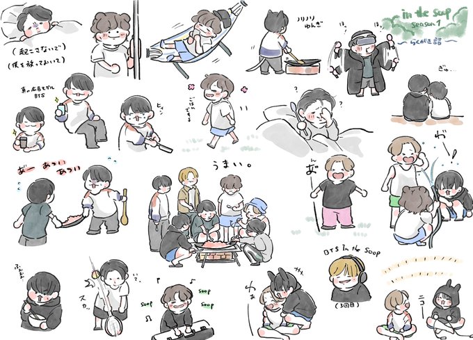 🌳5話です☺️ 危なげなくバットとボールキャッチをしたり、カヌーを楽しんだりするテヒョンさんの姿にその身体能力の高さを感じぜざるを得ませんでした🥺✨ 健やかにお昼寝をしお母さんの言うことを守り(きれてはいない)、出汁を殴るJK可愛かったですね🐰💕 #bts #btsfanart #btsinthesoop