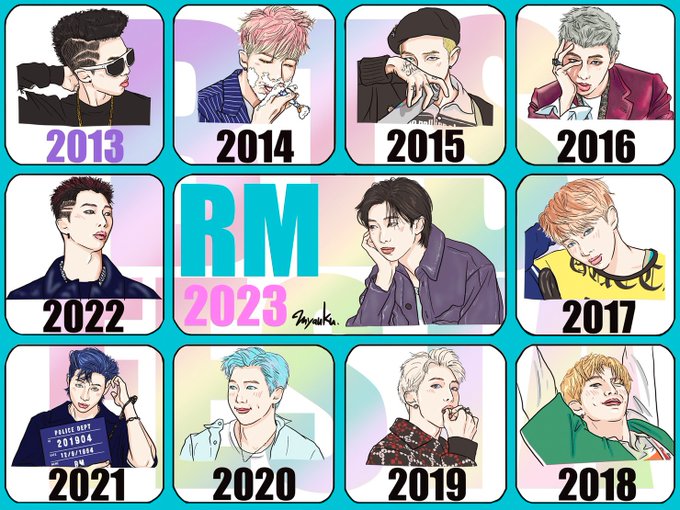 大好きなバンタンの10周年を記念して、メンバーごとの10年をイラストで描いてみました💜一人目は我らがバンタンのラップの申し子RM💙英才すぎるリーダー、不器用すぎる男、見た目はワイルドボーイ中身は自然を愛するムーミンボーイ💙 #BTS10thAnniversary #BTSFesta2023 #BTSRM @BTS_twt @bts_bighit