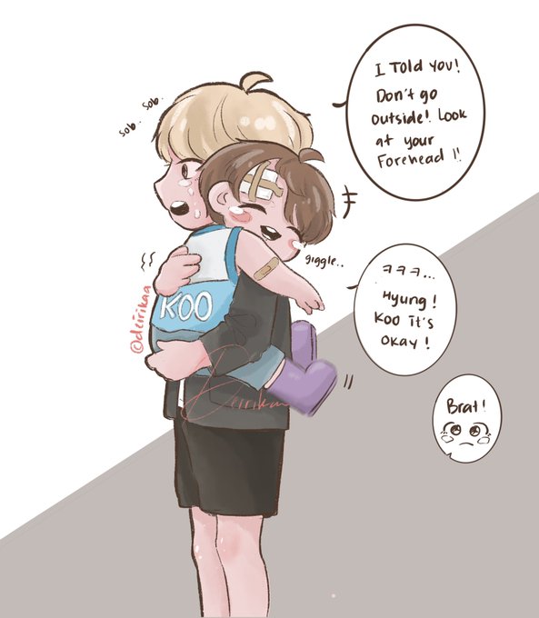 9yo seokjin with 3yo kook. Guess who is the stone? ƪ( ˊ̱˂˃ˋ̱ )ʃ #seokjin #jungkook #BTSchildhoodAU #deirikaafanart