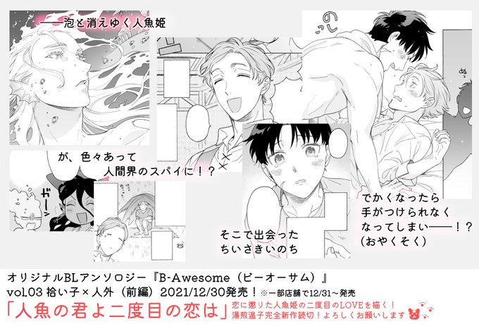 【🧜♂️お知らせ🧜♂️】 12/30発売B_Awesome🐯拾い子×人外(前編)に新作描き下ろしました。後編は1月発売! 初めての人外モノ…ですがかなりお気に入りな二人になったのでチェック✔していただけたら嬉しいです🤍 #B_Awesome #ビーオーサム 試読👇 twitter.com/B_Awesome_pr/s…