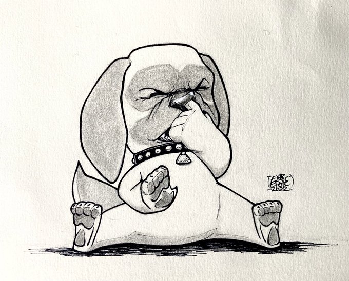 21. BAD DOG 🛋 Introducing Shiho, a good boy with a very bad habit Still expanding the #BabyBearBob universe, slowly but surely 🪓🐻 21 down, 10 to go ✍🏽🌄🔄 #inktober2022 #drawingoftheday #sketchbook #traditionalart #illustration