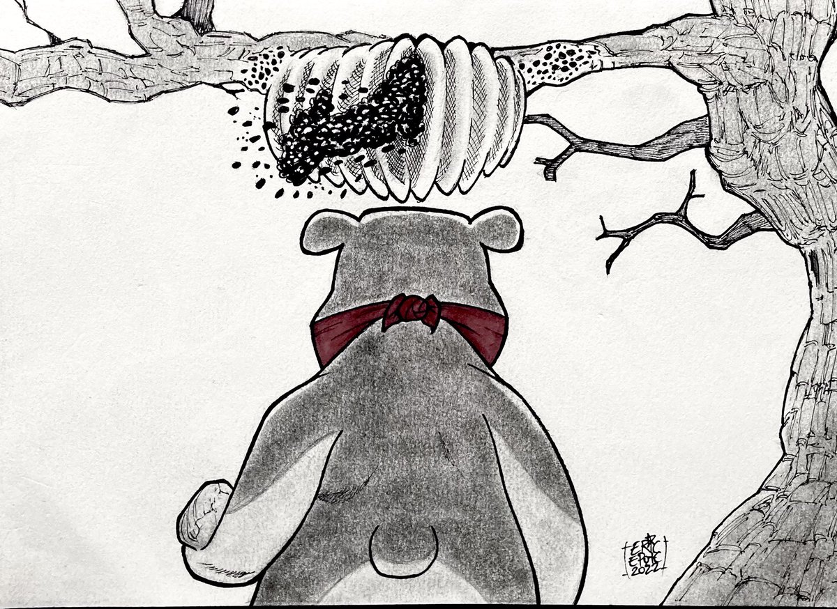 25. TEMPTED 🐝 "The Hunger For More" __ #inktober2022 #artist #sketchbook #illustration #BabyBearBob🪓🐻