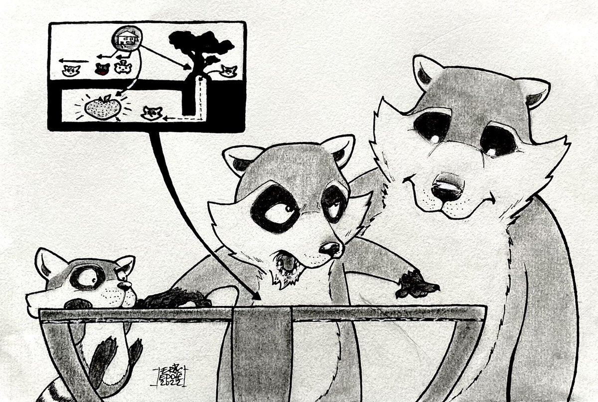 22. HEIST 🍓 "Operation Strawberry" Still expanding the #BabyBearBob universe, slowly but surely "Nora, Accon and Coronac going over the plan one last time" (Full story on IG) __ 22 down, 9to go ✍🏽🪓🐻🔄 #inktober2022 #drawingoftheday #sketchbook #traditionalart #illustration