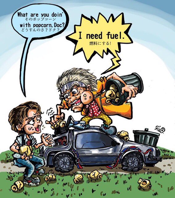 【イラスト】 『BACK TO THE FUTURE with Popcorn』 「What are you doin’ with popcorn, Doc?」 「I need fuel !!」 #バックトゥザフューチャー #BackToTheFuture