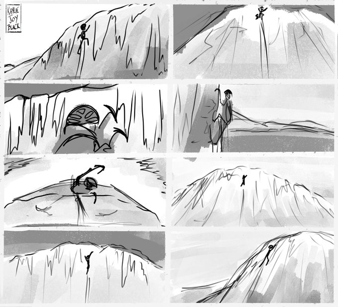 Day 12: Slippery I enjoyed the mash up of camera angles from real photography, our own climbing photography and mixing in compositions. I might turn some of these into real paintings after inktober #inktober2020 #compositionstudy #perspective #backgrounddesign #productiondesign