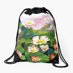 Bags from a magical garden tinyurl.com/ybpsee5s on lots of stuff in my #Redbubble shop #SmallBusinesses #SupportSmallBusinesses #GiftIdeas #Watercolour #Watercolor #Flowers #Garden #Roses #BackPack #GymBag #DrawstringBag #Bags #Accessories #School #SchoolBag #Hiking #BookBag