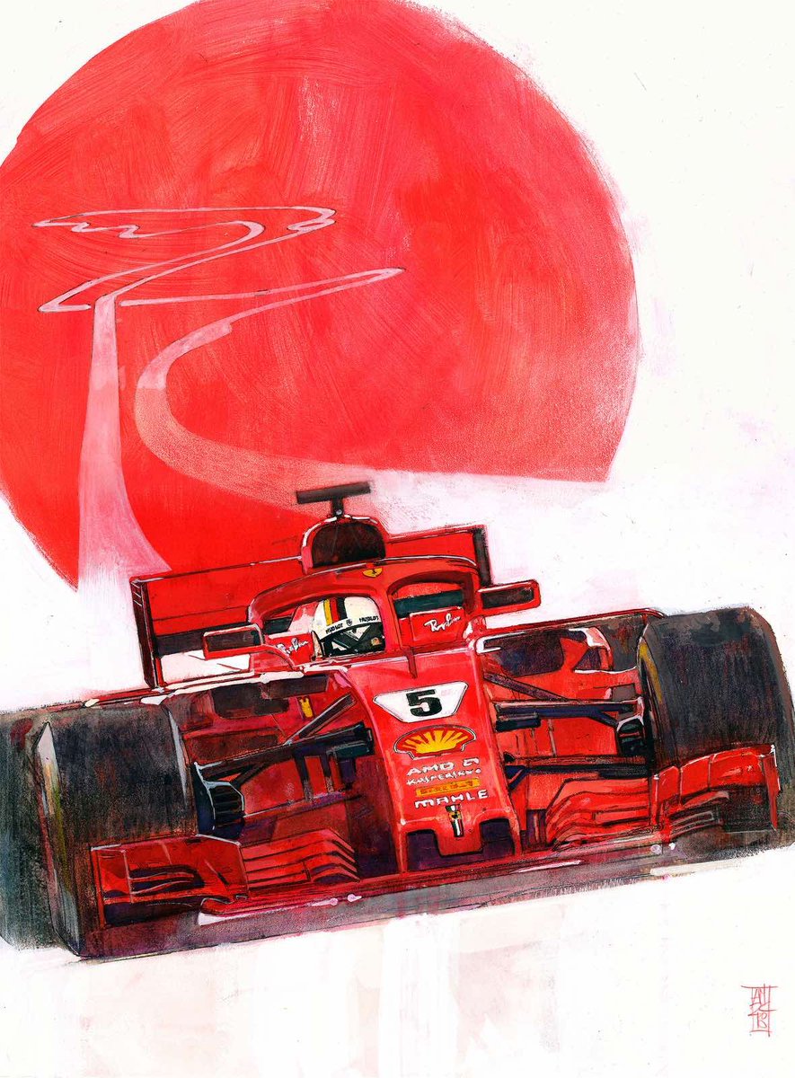 Congratulations to @ScuderiaFerrari on their 1-2 finish. Such an exciting start of the season at #BahrainGP Here is a painted Suzuka poster I did way back when Vettel was still in the cockpit. 15x22 on Arches paper.