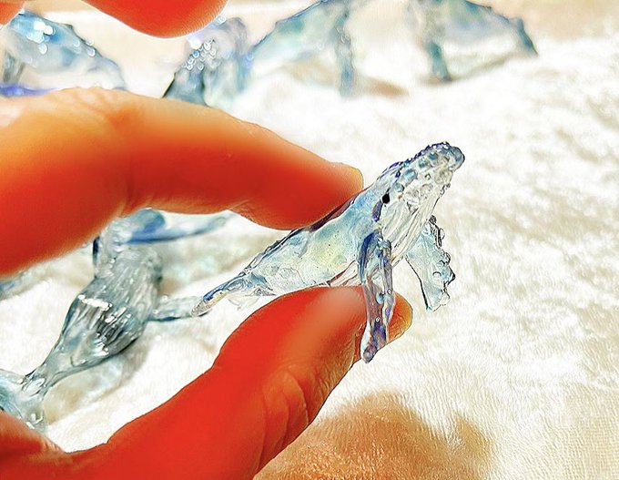 #見た人もなにか無言で海をあげる 蒼空の海に溶けるザトウクジラ 空洞レジン・クジラシリーズ ザトウクジラ 全長約9.5cm 体重約3g #balloonresin #humpbackwhale #handdrawing #resin #handcrafted