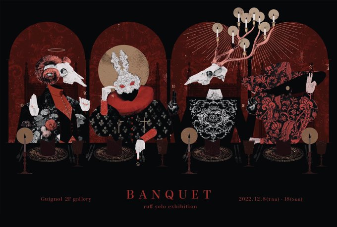 本日21時よりギニョール さんサイトで作品とグッズの通販がスタートします! よろしくお願いします🍷✨ (現在はプレビューがご覧頂けます。) shop.guignol.jp/?mode=cate&cbi… #BANQUET #ギニョール