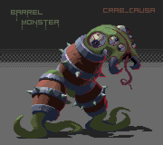 My #Barrel monster for today's @Pixel_Dailies challenge. Another fun one to improvise💀 #pixel_dailies / #pixelart / #pixelartist / #ドット絵