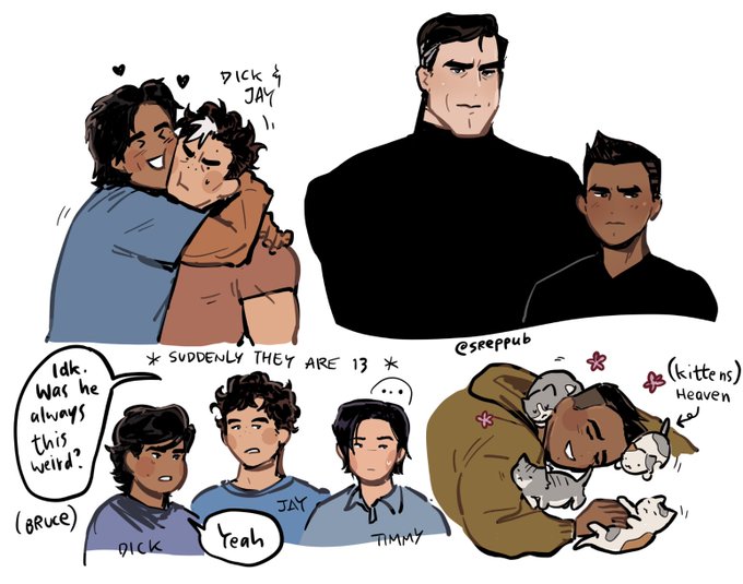 J: Everyone knows that I hate Batman!😡 Other Robins: Whatever. #Batfam #RedHood #Nightwing #RedRobin #Robin #Robins #jasontodd #dickgrayson #timdrake #damianwaye