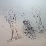 Inktober 2021 day 26: connect (1/2) #inktober #inktober2021 #connect #sketch #illustration #traditionalart #blackandwhite #robot #battery #broken #low #series
